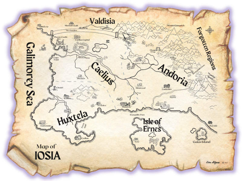 Want to learn more about Iosia? There is a fun interactive map of Iosia on the Flawed Realms Thorne Chronicles page...so check it out!