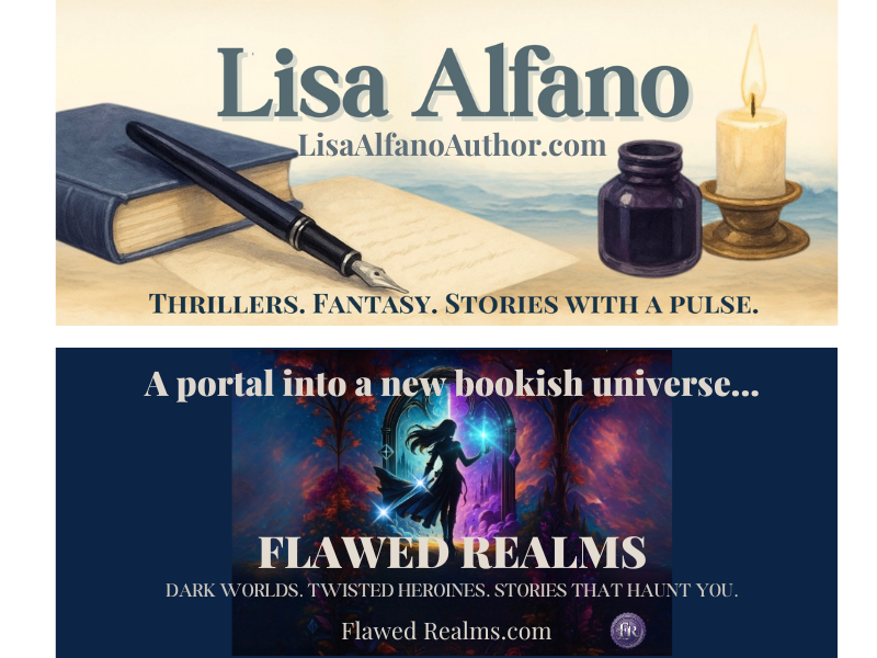 I’ll also share sneak peeks into new projects that I’m working on and highlights from my new author website — LisaAlfanoAuthor.com, and my fantasy and thriller bookish site — FlawedRealms.com.